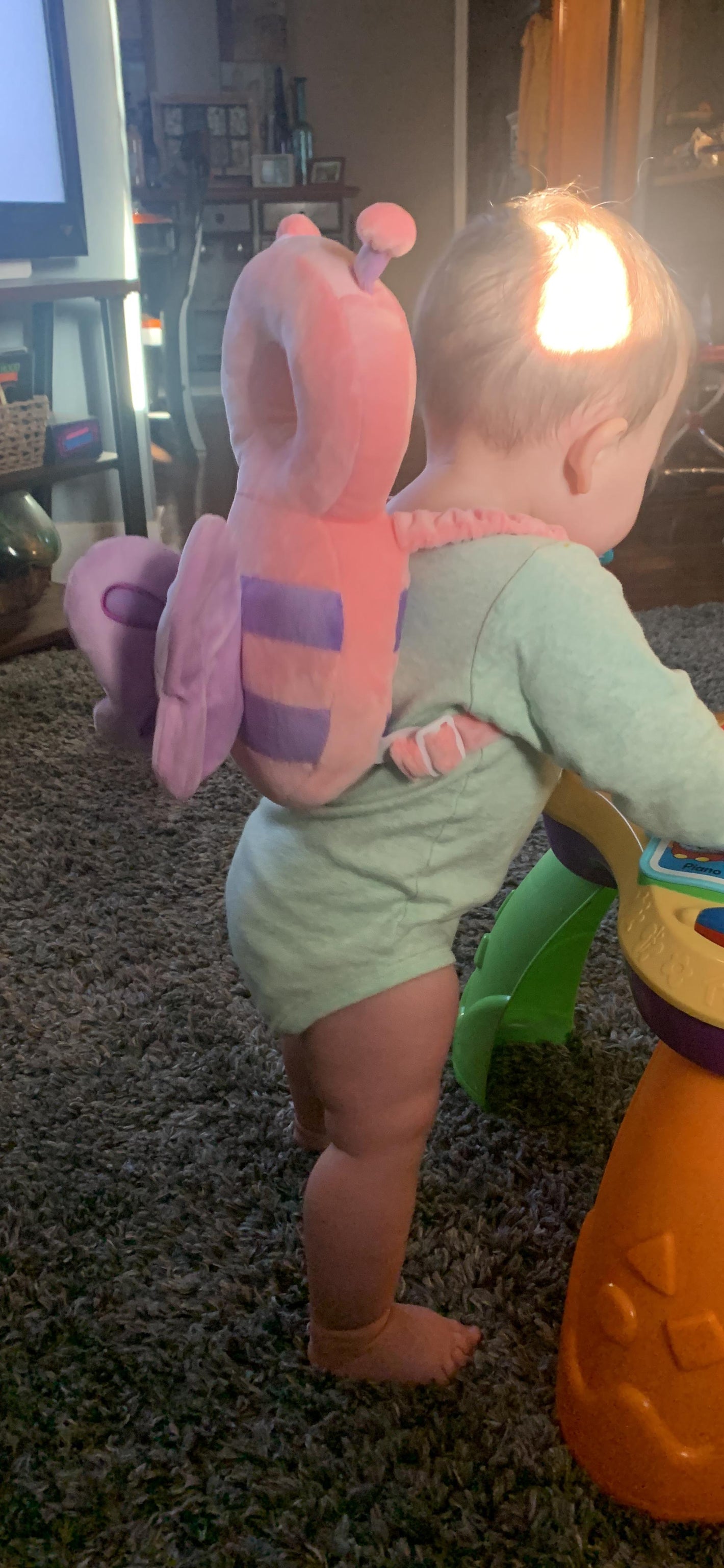 This padded cute Elephant backpack is a must have for when your babies start walking. I have hardwood floors throughout my house and I was so nervous at thought of my daughter hitting her head on these floors.